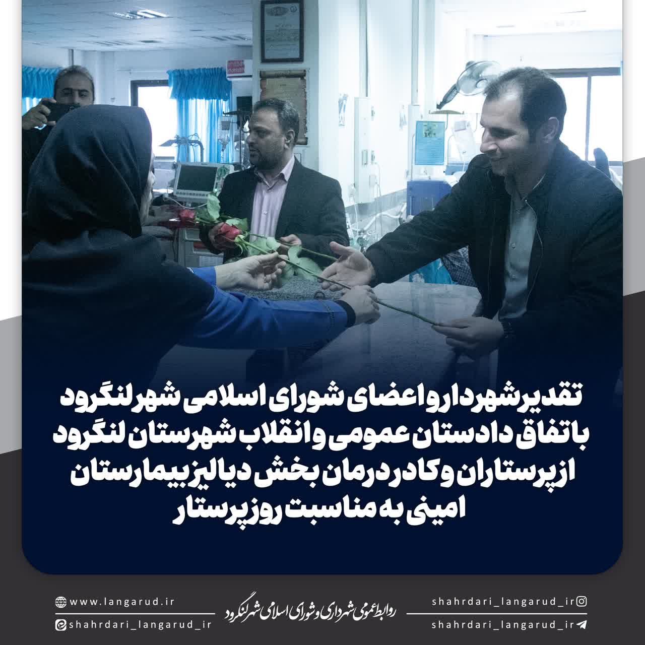▫در حاشیه این دیدار شهردار و اعضای شورا باتفاق دادستان شهرستان لنگرود از روند خدمات رسانی به بیماران تحت درمان بخش دیالیز دیدار و جویای مشکلات این عزیزان شدند .