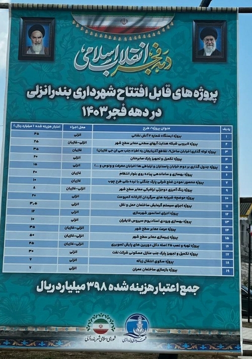 شهردار انزلی بیان کرد :از زمان تصدی اینجانب از دهه فجر سال گذشته تاکنون ۵۶ پروژه ، با اعتباری بالغ بر ۱۴۶ میلیارد تومان انجام شده است.