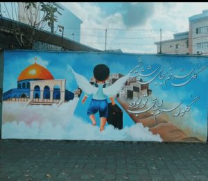 یوسفیزدانی درباره مفهوم تصویرهایی که دیوارنگاری شده است گفت: این طرح با مضمون اتحاد کشورهای همسایه برای حمایت از مردم فلسطین و مظلومیت کودکان بی دفاع فلسطینی، که توسط هنرمندان رشتی به تصویر کشیده شده است.